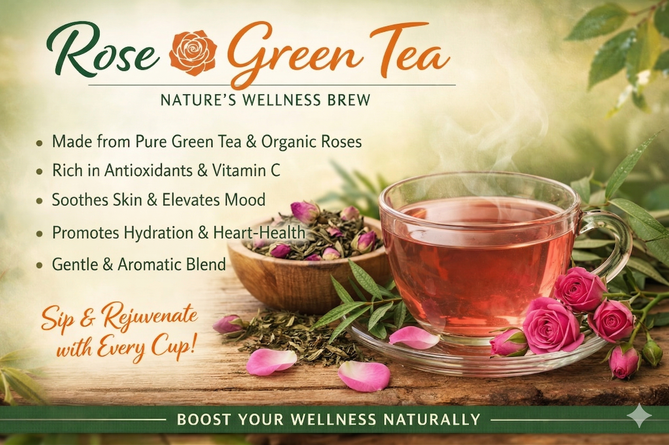 IndicFood’s Rose Green Tea is a delicate fusion of premium green tea leaves and fragrant rose petals. This soothing blend combines the fresh, grassy notes of green tea with the naturally sweet and floral aroma of rose, creating a refreshing and calming experience in every cup.Rich in antioxidants, Rose Green Tea supports overall wellness, helps boost metabolism, and promotes relaxation. Its gentle floral character makes it perfect for morning refreshment or an evening unwind ritual. At IndicFood, we focus on purity and quality—carefully selecting ingredients to ensure a clean taste, vibrant aroma, and a truly premium tea experience.